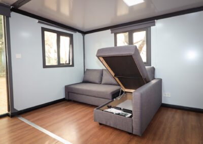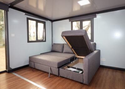 Graças ao seu sistema expansível, estas casas podem ser facilmente transportadas e instaladas em pouco tempo, transformando-se num espaço amplo, confortável e totalmente funcional. Este conceito permite reduzir significativamente o tempo de construção, os custos associados e o impacto ambiental, mantendo elevados padrões de qualidade.